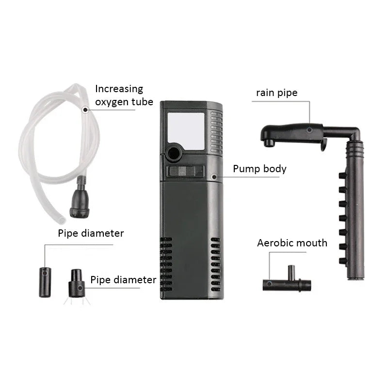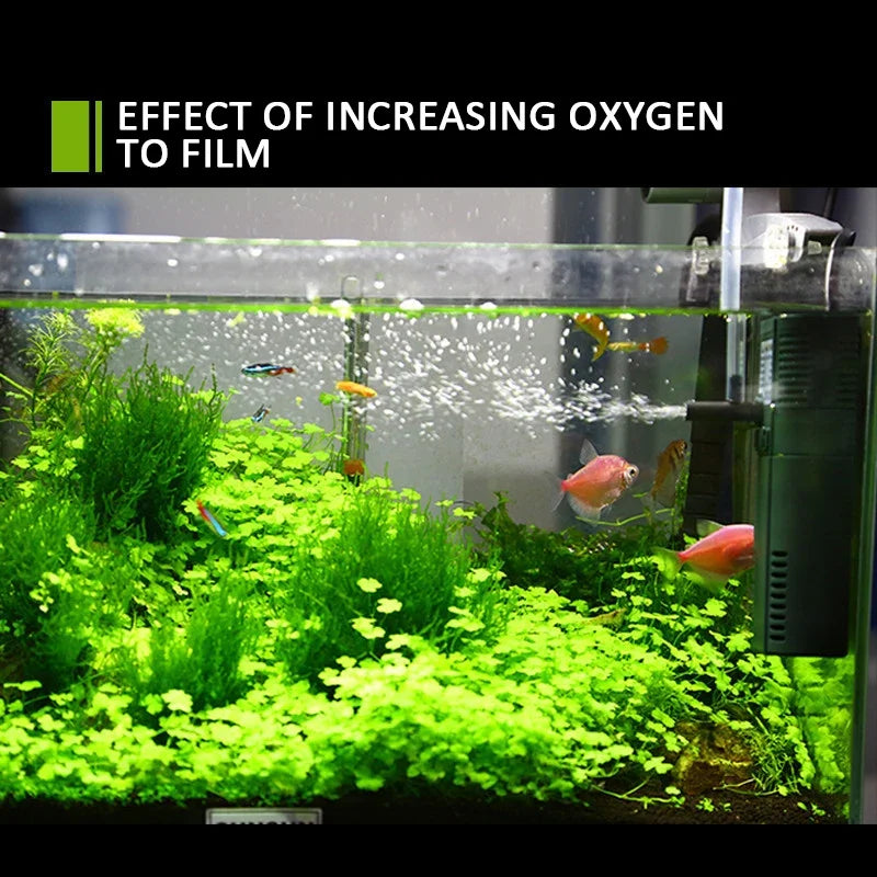 This 3-in-1 multifunctional aquarium filter is designed to meet all your fish tank maintenance needs. With an integrated submersible pump, adjustable air pump, and water flow filter, it provides continuous oxygenation, efficient water circulation, and optimal filtration to keep your aquatic environment pristine. Easy to install and compatible with various aquarium sizes, this filter ensures a balanced and healthy habitat for your fish.