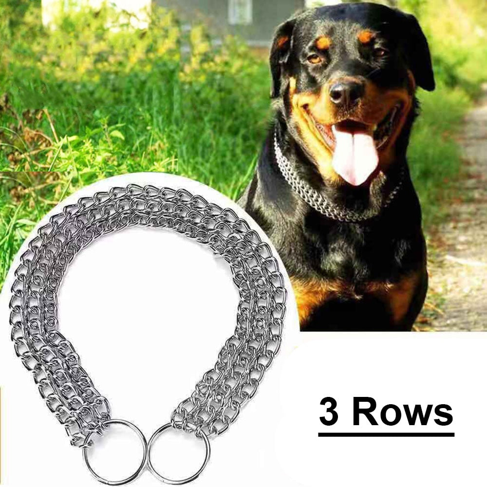 3 Rows Stainless Steel Dog Chain Collar | Strong Metal Slip Pinch Choke Collar for Walking and Training Large Dogs